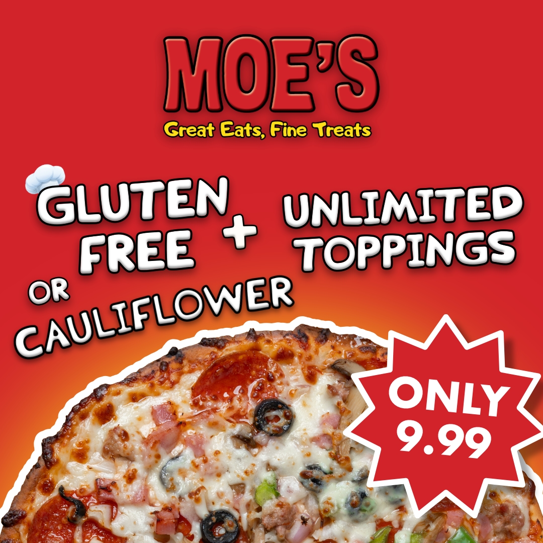Monthly Specials November Special:Any 10″ gluten free or cauliflower crust pizza with unlimited toppings only $9.99! Daily Specials